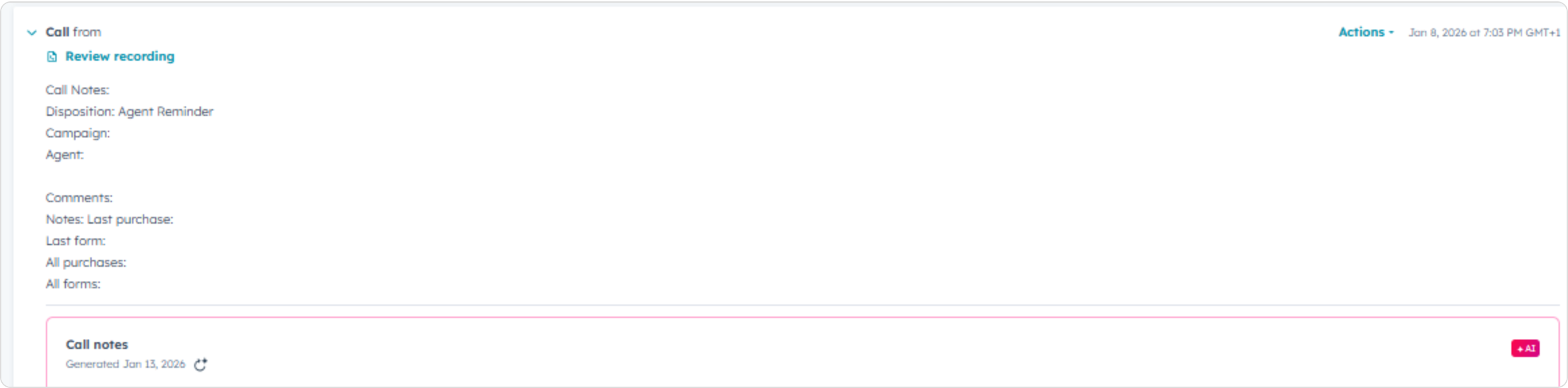- Confirm the call appears in the activity timeline