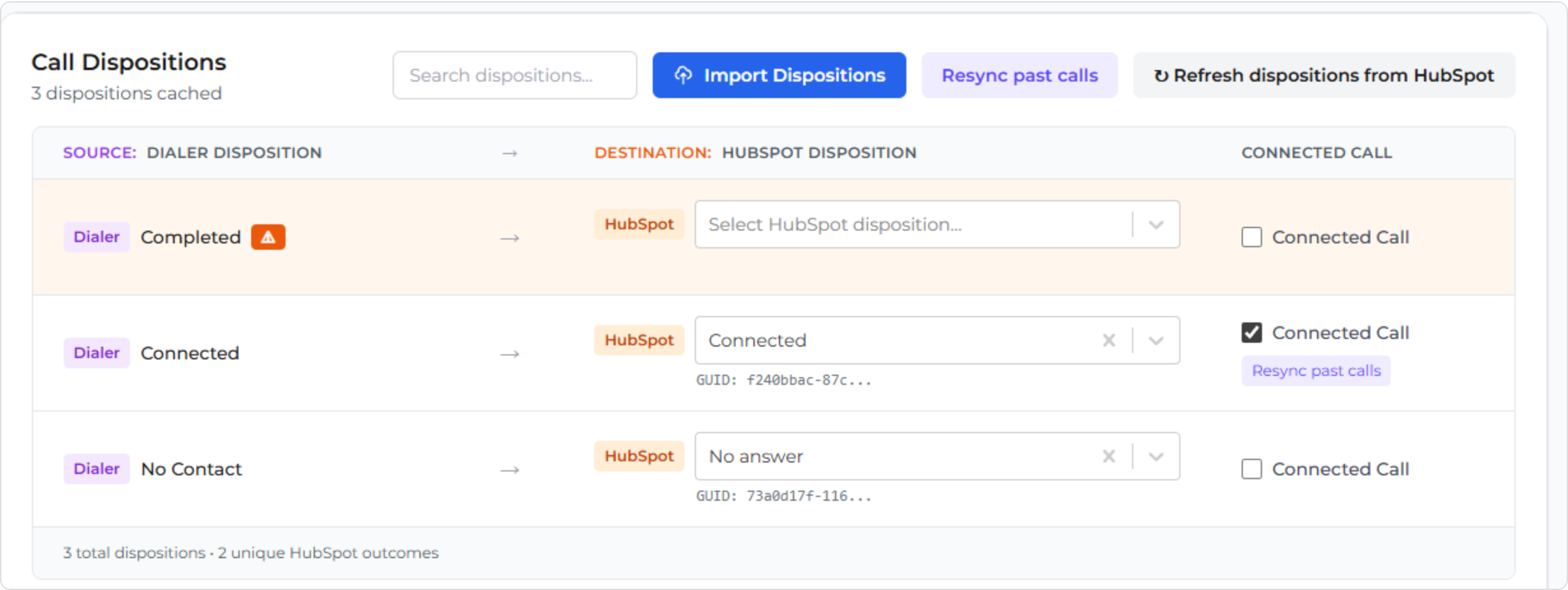 Call outcome mapping ensures the result of a call in Dialer matches the result shown in HubSpot.