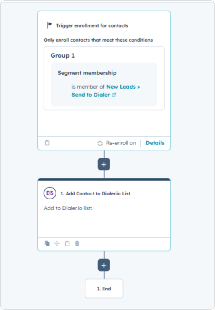 Using HubSpot workflows, you can send contacts into Dialer campaigns based on CRM logic such as lifecycle stage, form submission, or list membership. Contacts are sent to Dialer only when you explicitly configure and run a workflow.