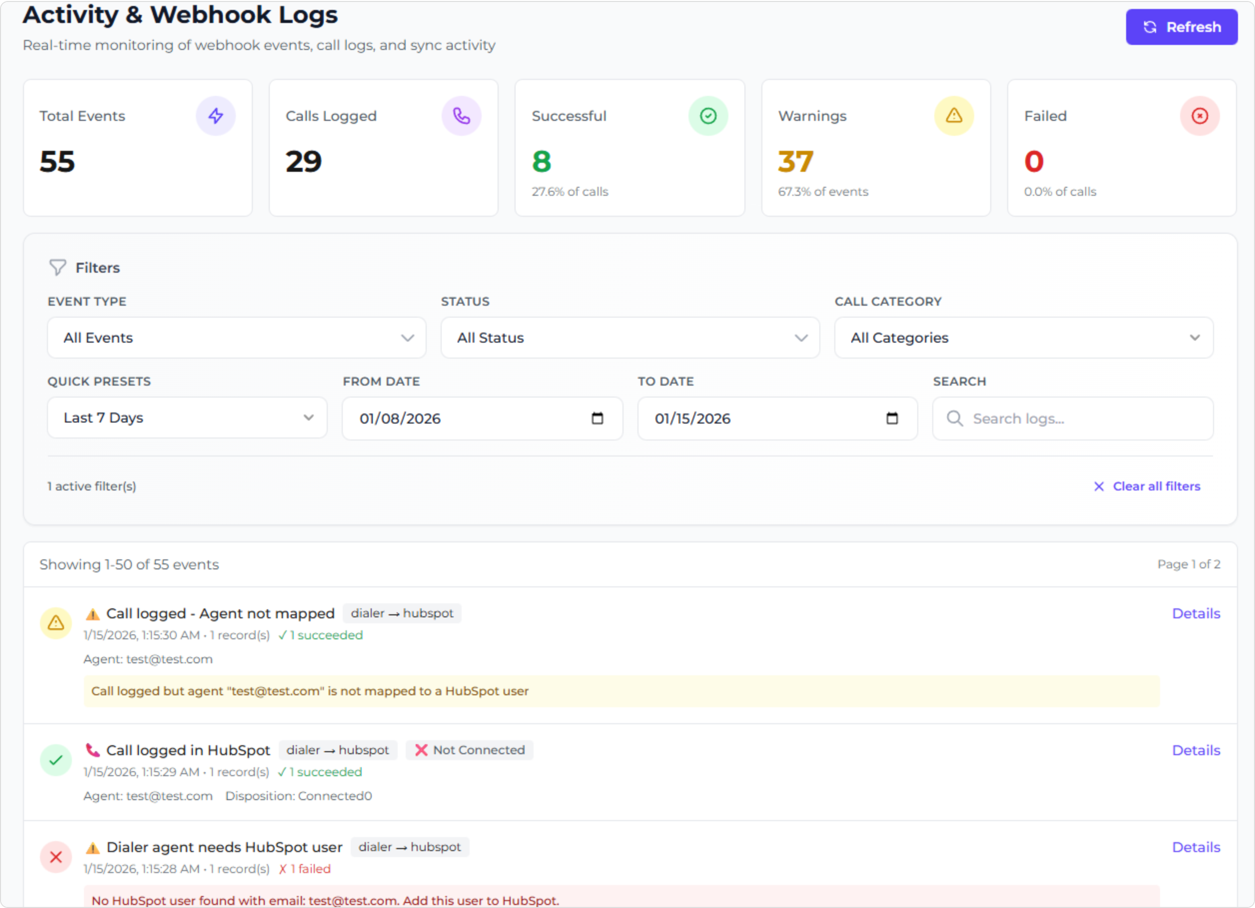 If the agent is new, Dialer Sync will try to match the agent automatically. Once the agent exists in HubSpot, future calls will be assigned correctly.